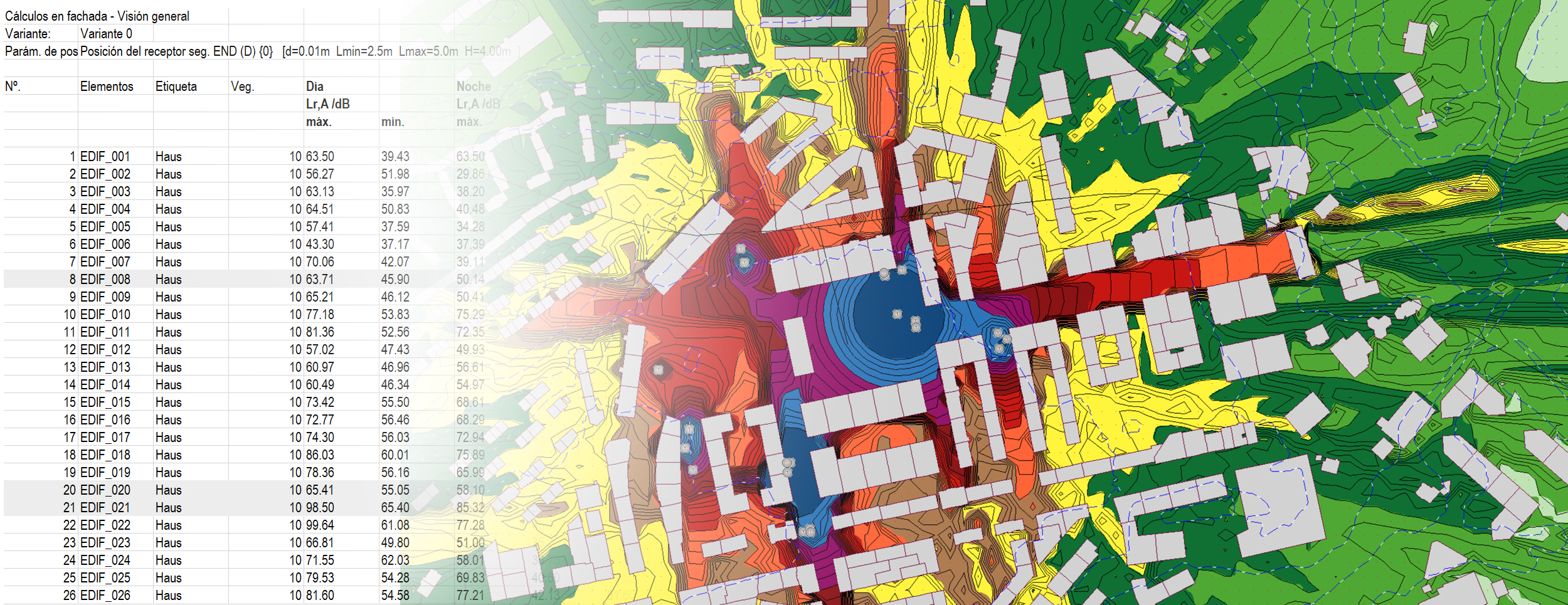 Las simulaciones acústicas predictivas son una herramienta muy potente que nos permite determinar la posibilidad de impacto en una zona o punto concreto como consecuencia del desarrollo futuro de una actividad, el paso de una infraestructura y/o la implantación de una industria, entre otros.